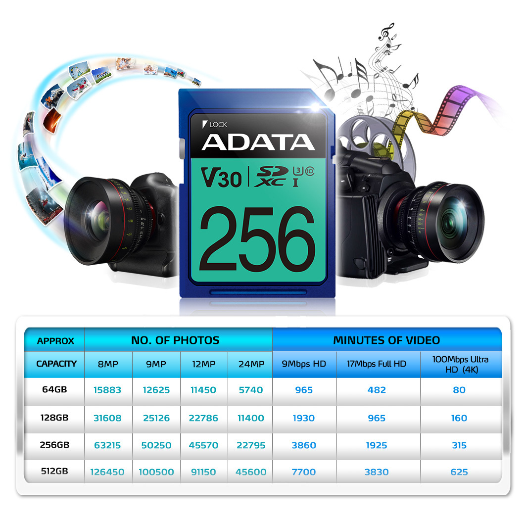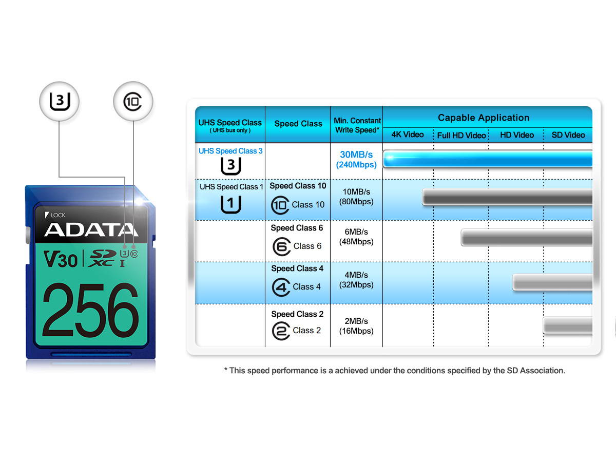 UHS Speed : Class 3Speed Class : Class 10Video Speed Class : V30
