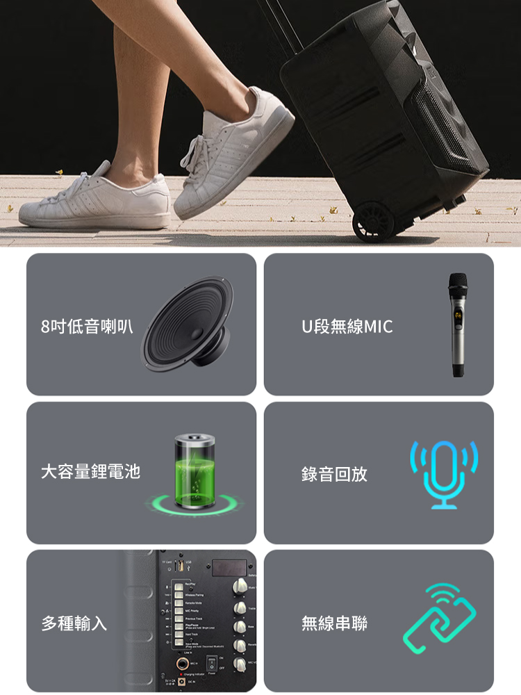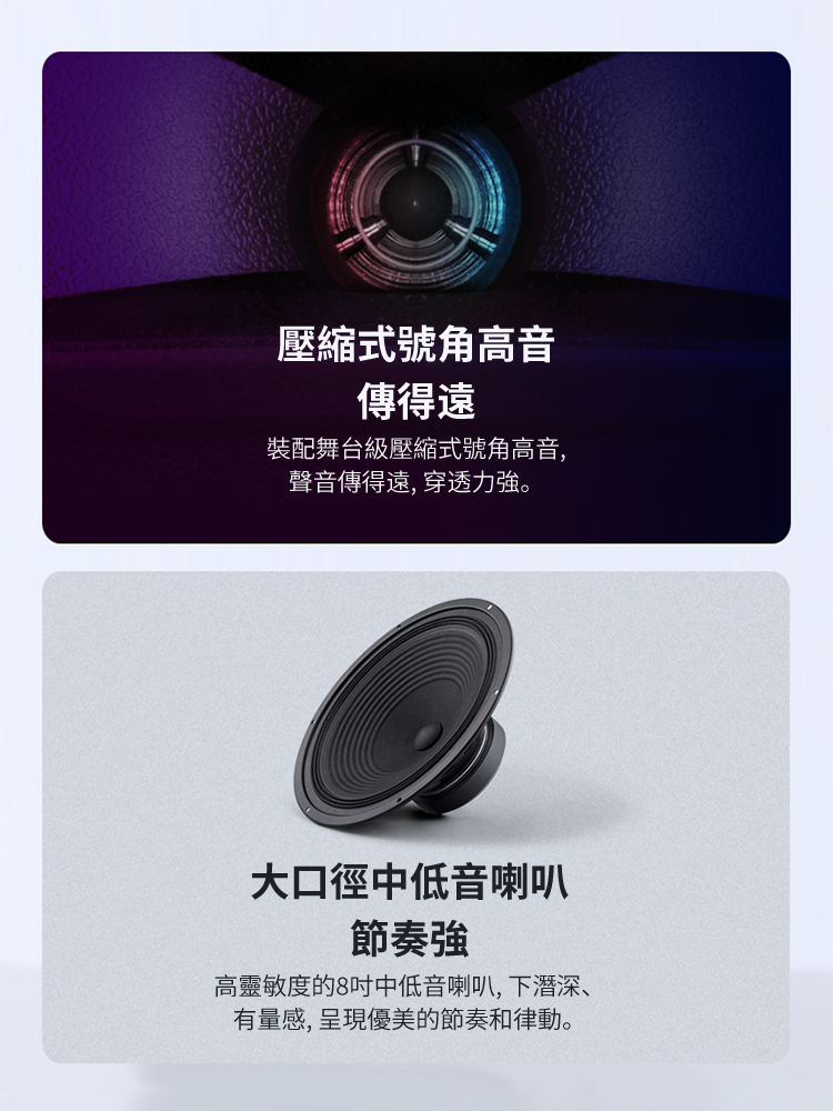 - 8吋低音喇叭, 呈現優美的節奏和律動