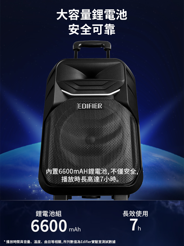 - 6600mAH大容量鋰電池, 連續使用7小時