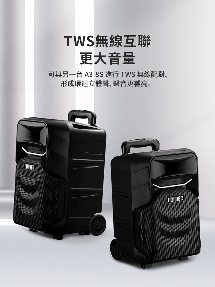 - 無線串聯,兩台音箱TWS配對,聲音更響亮