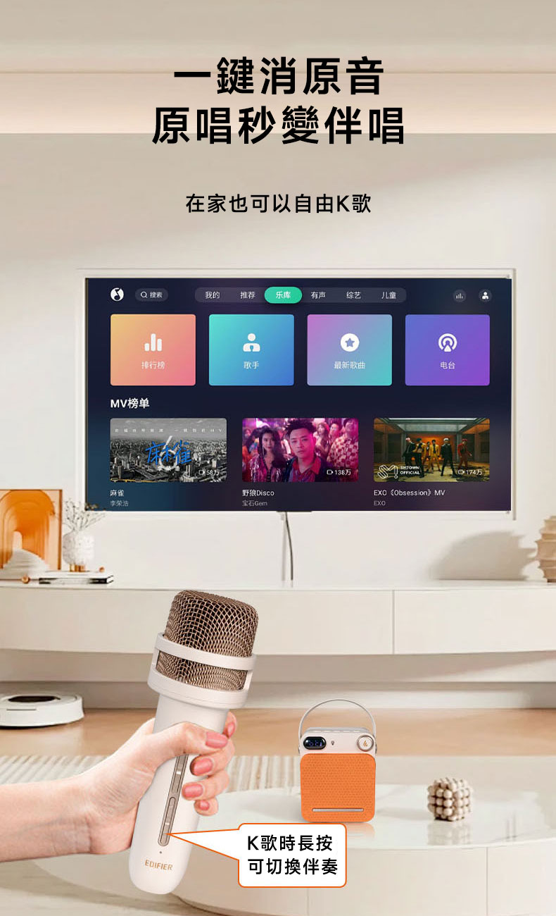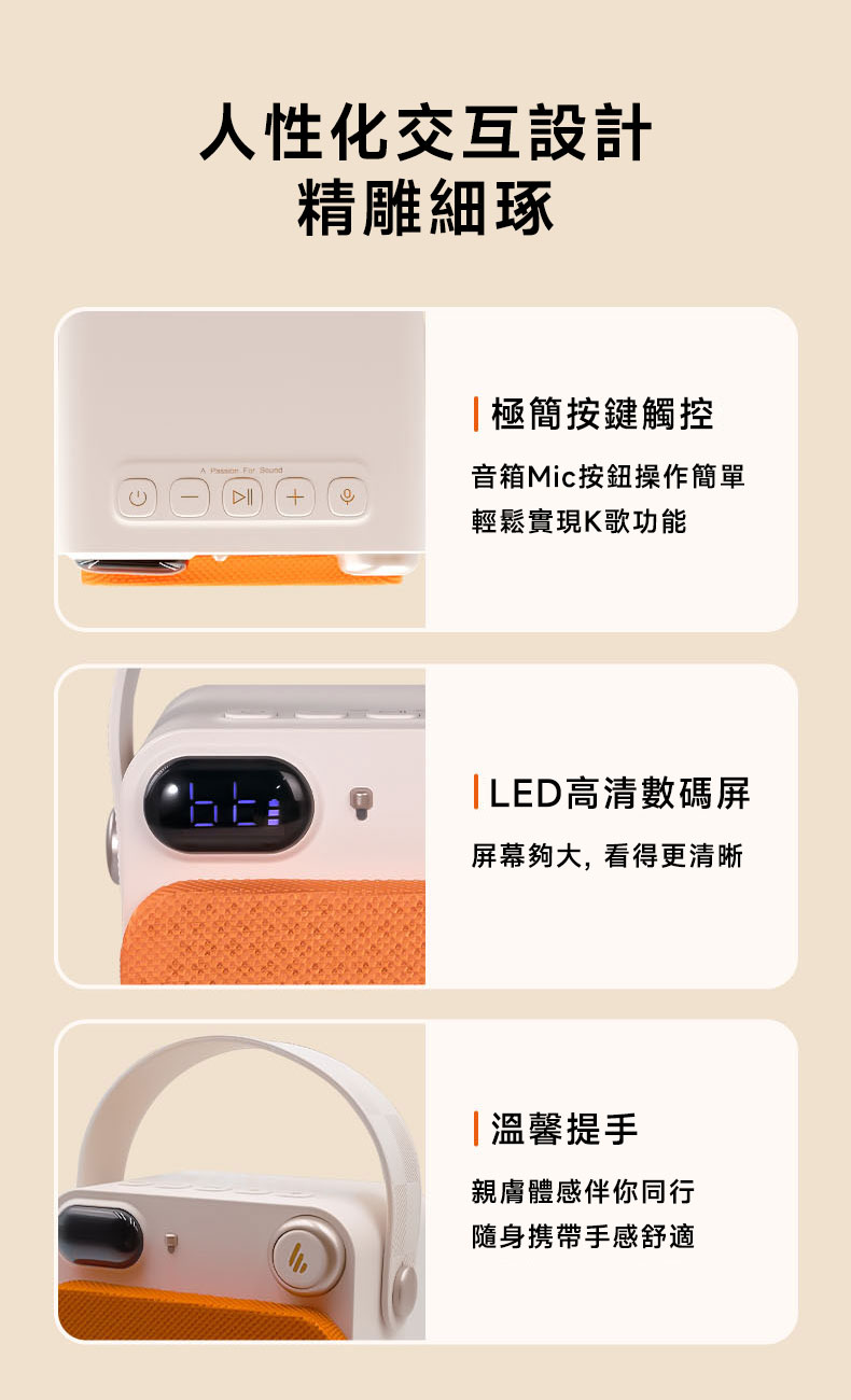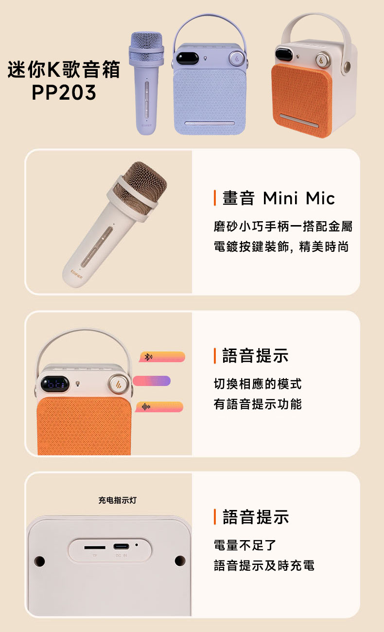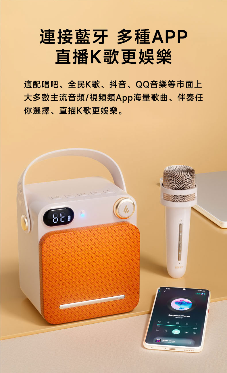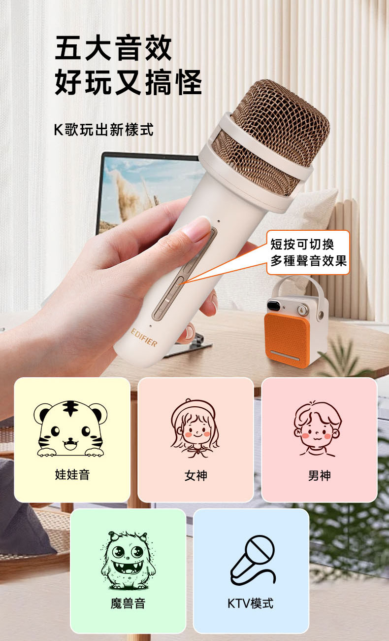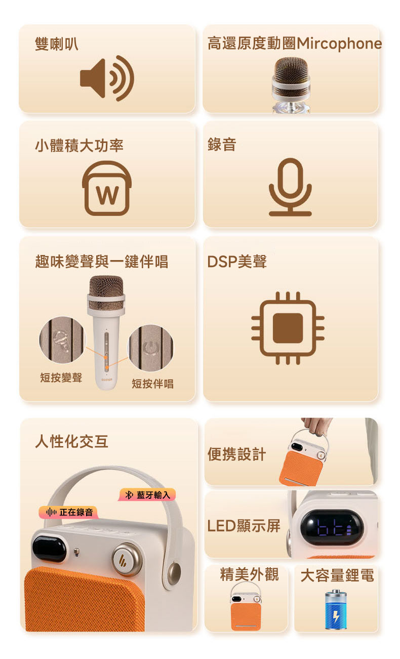 - 專業DSP聲學技術,美化聲音,小聲唱夠大聲。
