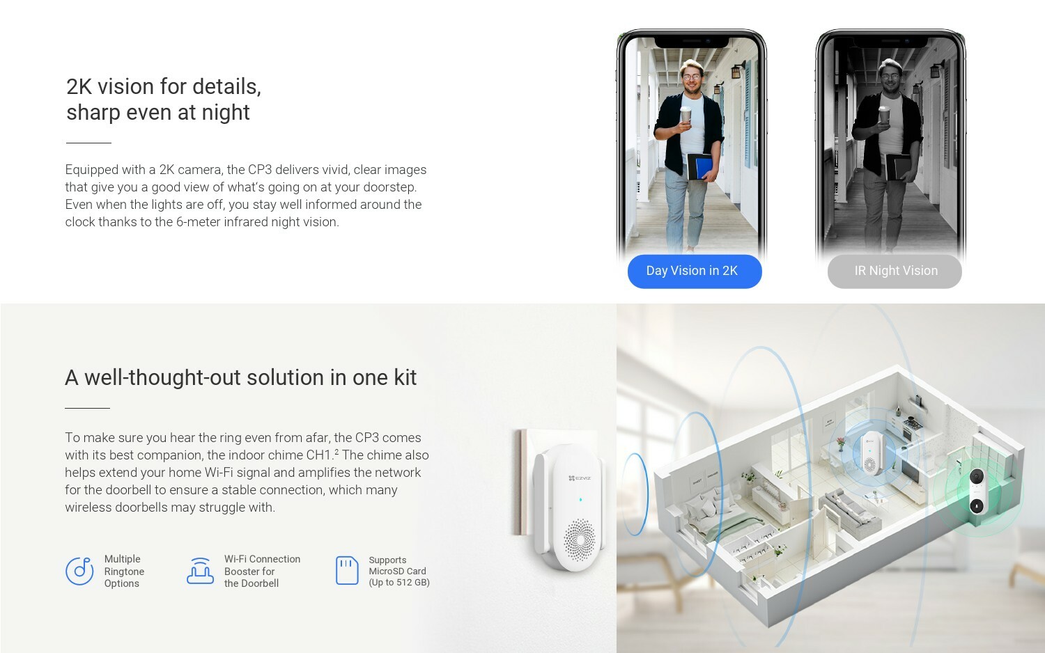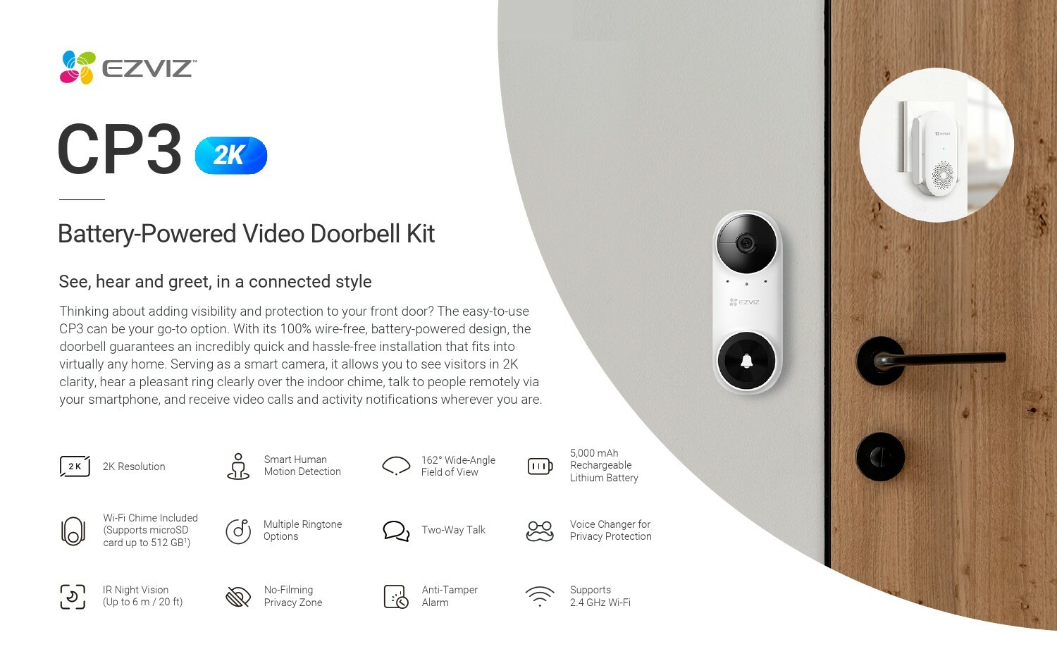 EZVIZ CP3 2K Battery-Powered Video Doorbell Kit