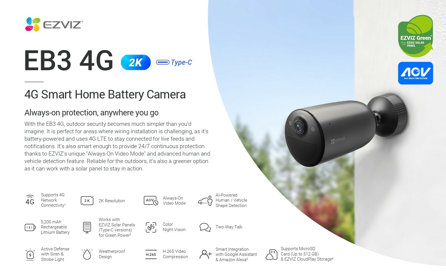Cloud Storage : Supports EZVIZ CloudPlay storage (Subscription required)