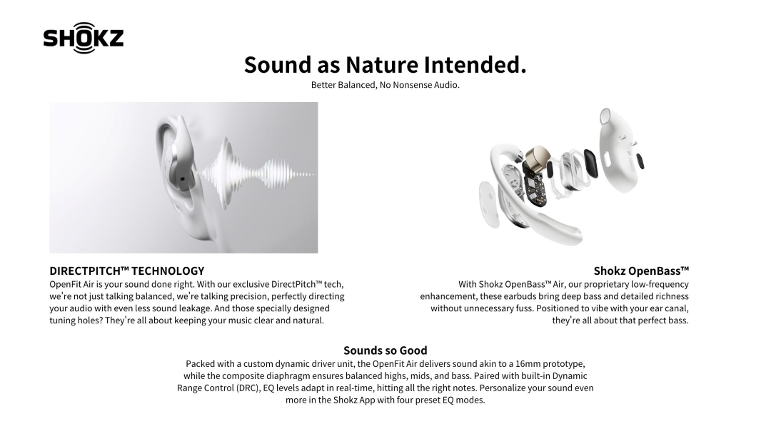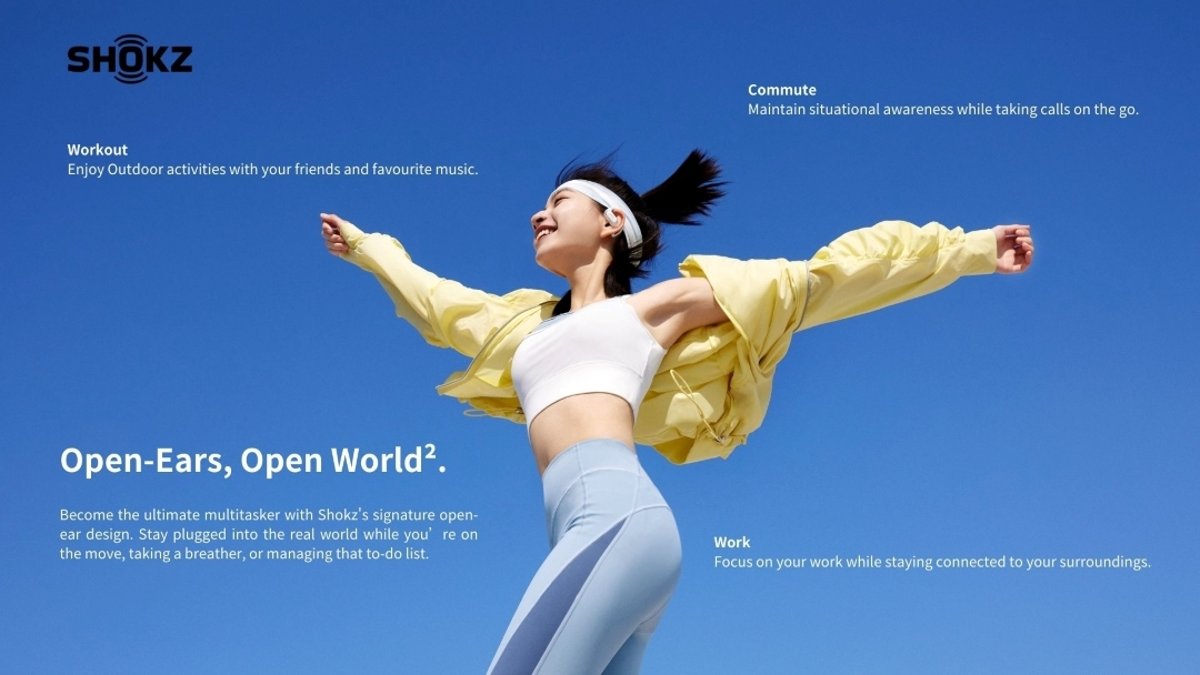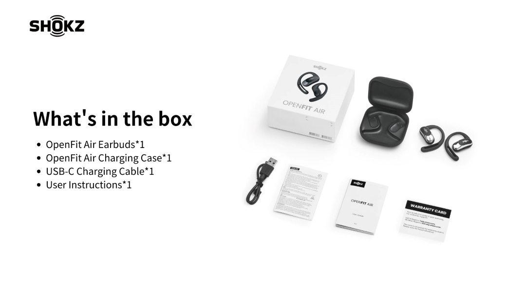 - When using during outdoor activity, please ensure earbuds are being properly worn and control the volume to ensure that you can hear your surroundings, including traffic signals, passersby, etc. Using OpenFit Air while riding or driving may distract your attention and have higher risk of sports injury and traffic accident; Using OpenFit Air while riding or driving may violate local laws or community regulations, use of this product should comply with local laws and community regulations.