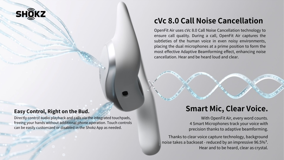 - Drawing insights from the Shokz Acoustic Laboratory's experiments simulating scenarios like intersections, train stations, and restaurants, aligning the dual microphones to this position yields an average signal-to-noise ratio Improvement of 29dB when the artificial head experiences a sound pressure level of 65-72dB(A). This translates to a 96.5% reduction in environmental noise.
