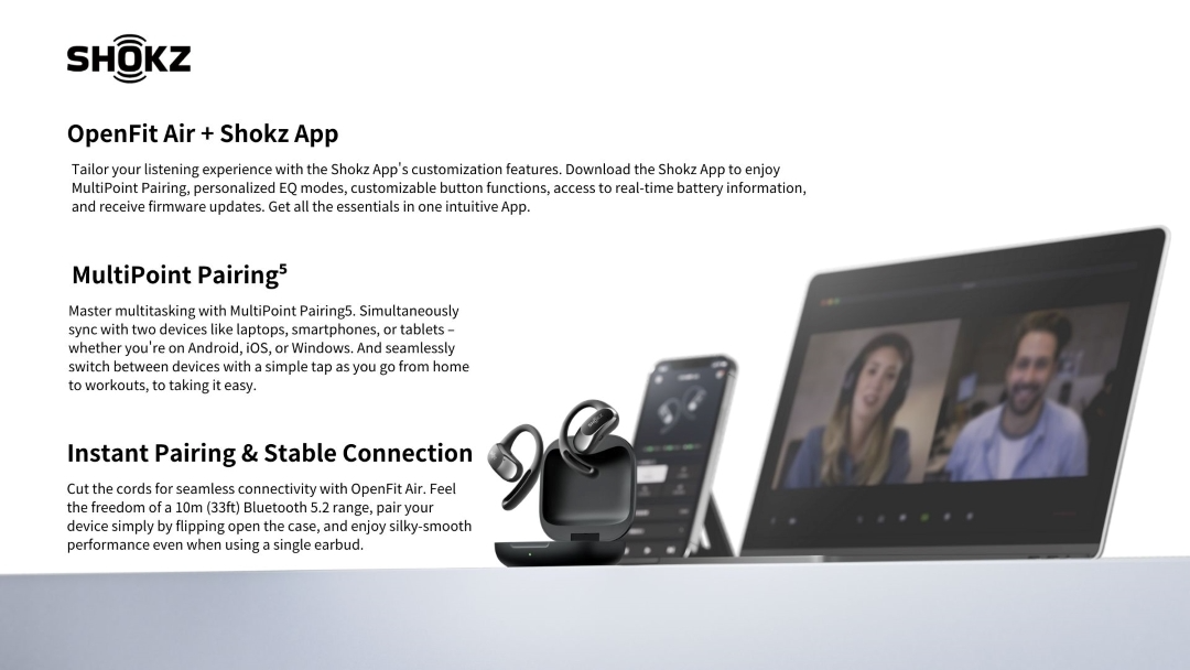 - MultiPoint Pairing is disabled by default and can be activated in the Shokz App. The headphones can memorize up to 5 devices.