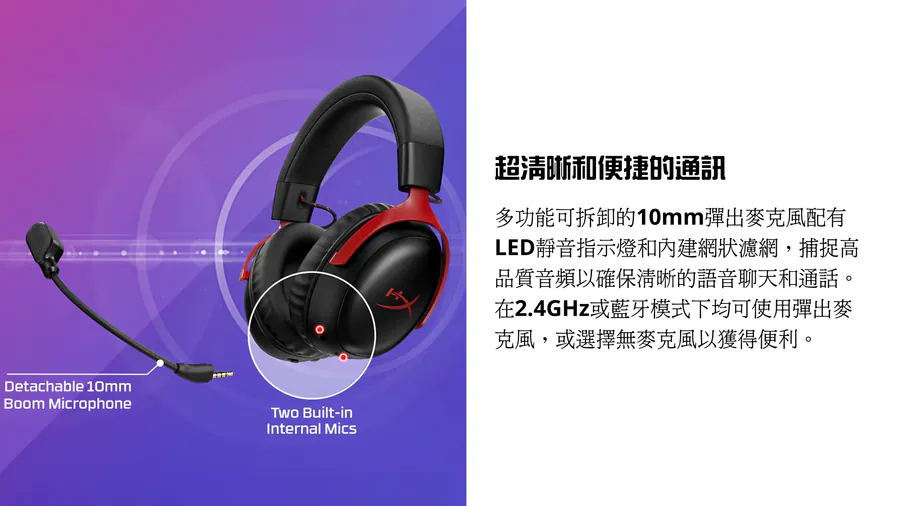•	可拆卸式 10 毫米懸臂麥克風配備 LED 麥克風靜音指示燈和內建網狀濾波器,可捕捉高品質音頻,帶來清晰的語音聊天和通話體驗。