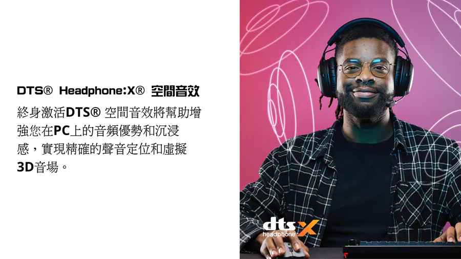 •	DTS® Spatial Audio3 的終身啟動將透過其精確的聲音定位和虛擬 3D 聲場幫助您增強 PC 上的音訊優勢和沈浸感。