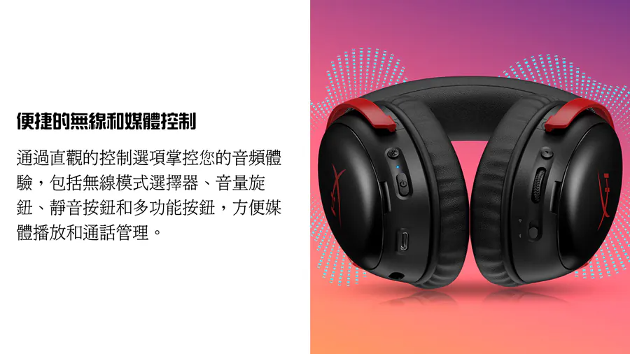 音頻控制: 音量、多功能按鈕、麥克風靜音 / 麥克風監控