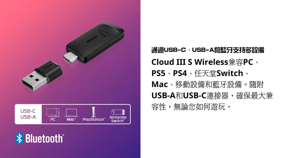 •	包裝盒內含:無線遊戲耳機、可拆卸麥克風、無線轉接器、USB-C 轉 USB-A 轉接器、USB 充電線、快速入門指南