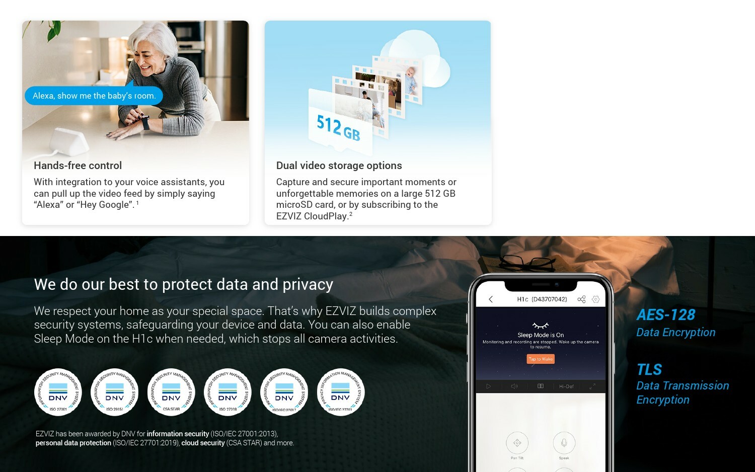 Cloud Storage : Supports EZVIZ CloudPlay storage (subscription required)
