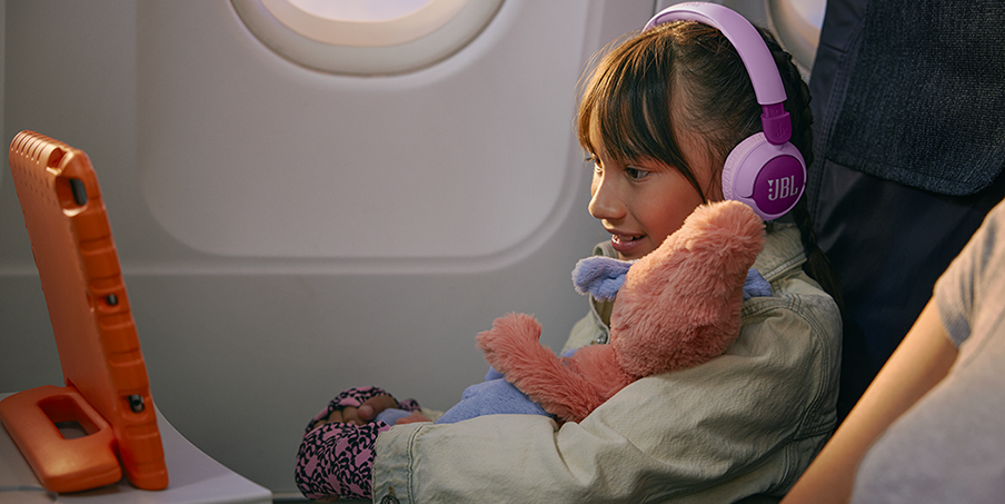 The plastic-free packaging folds into a fun device stand, and a playful JBL sticker set is included so kids can personalize their headphones.