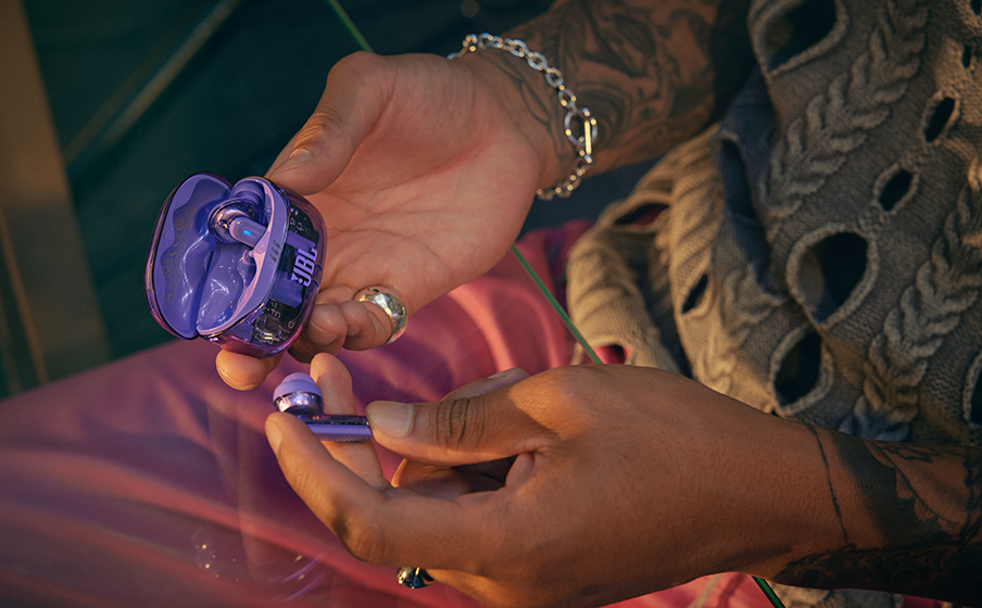 JBL Tune Beam 2 earbuds use Adaptive Noise Cancelling to tune out noises entirely or just let in as much of the outside world you want. Ambient Aware adapts how much of the outside world you want to hear, while TalkThru lets you talk with those around you—all without taking your earbuds out.