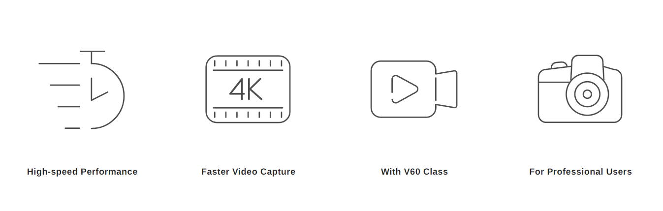 With a Video Speed Class rating of V60, you’re ready to shoot gorgeous videos in 1080p Full-HD, and 4K.