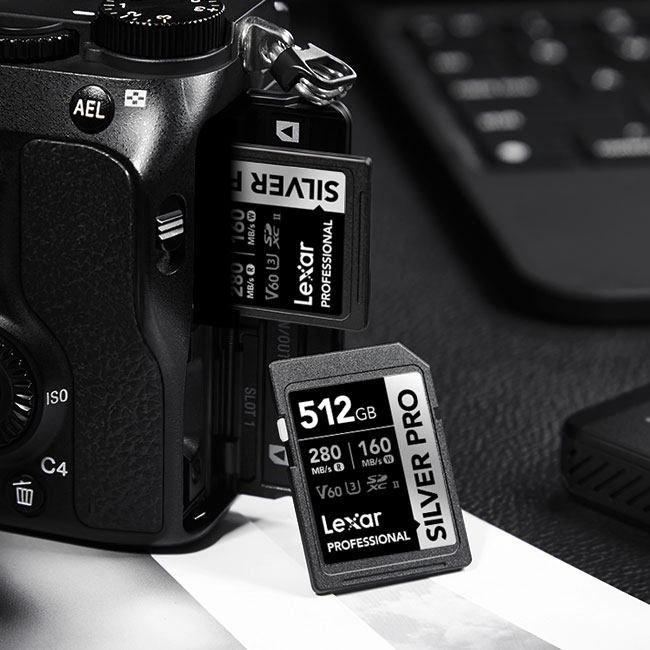 The Lexar® Professional SILVER PRO SDXCTM UHS-II Card delivers up to 280MB/s read and 160MB/s write*1 so you can capture stunning video and immaculate still images—and save time transferring and backing up your files. Plus, it comes in capacities up to 1TB, so you have room to stay in the moment and keep shooting.