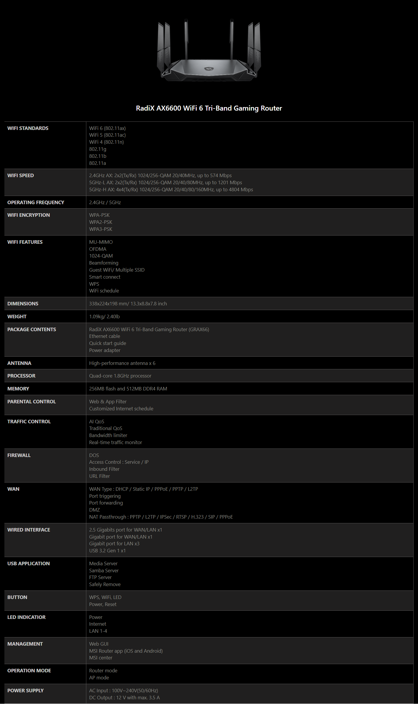 - WiFi 6 技術:具有MU-MIMO、OFDMA、波束成形和1024QAM以提高WiFi效率