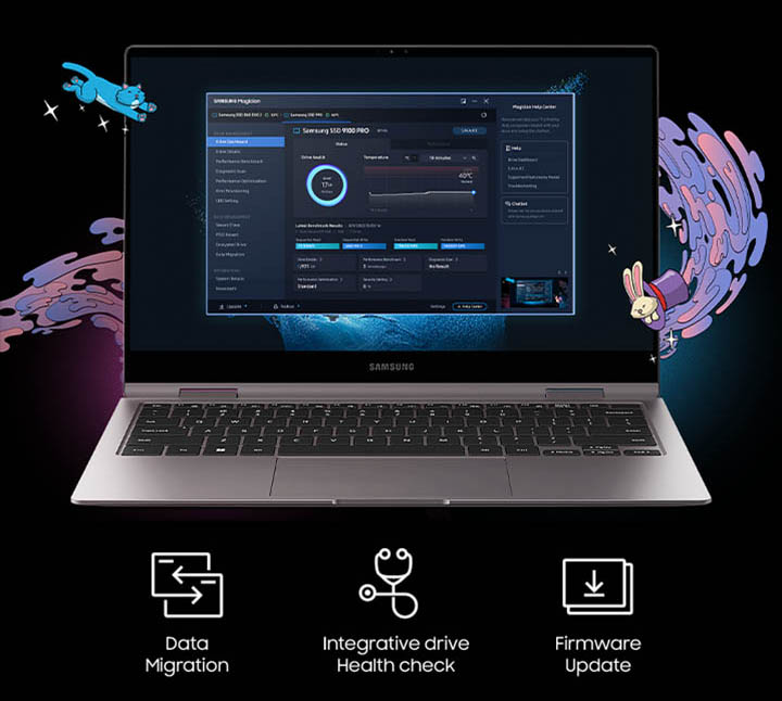 It’s not hocus-pocus. Your 9100 PRO SSD performs like new with the always up-to-date Magician Software. Get seamless firmware updates, extra encryption and continual monitoring of your drive health—no magic wand required.⁸