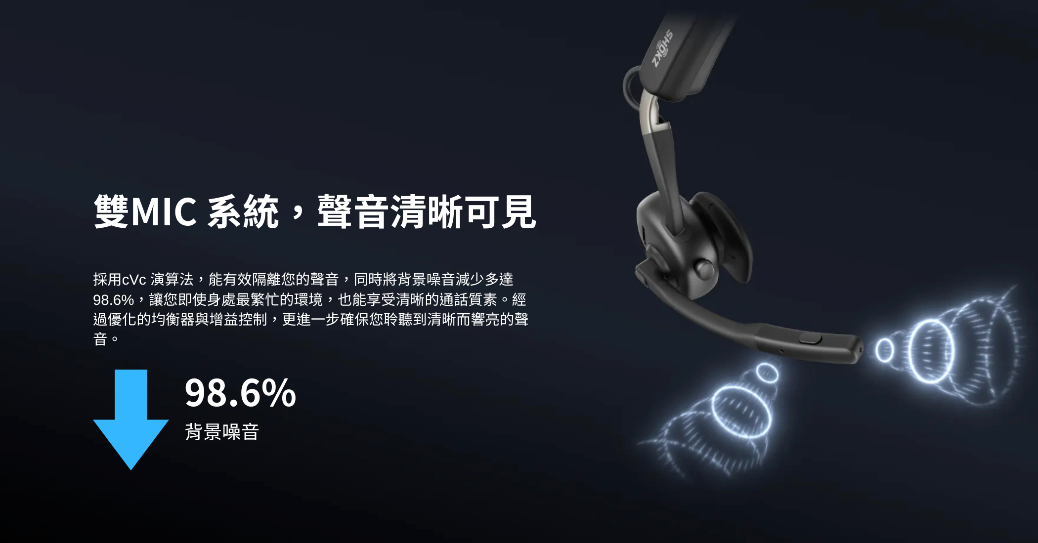 Shokz OpenMeet 開放式藍牙通訊耳機採用品牌標誌性的開放式耳機設計,徹底解決傳統入耳式及耳罩式耳機所帶來的不適與悶熱,提供全天候的舒適聆聽體驗。配備長達 15 小時的電池續航力與快速充電功能,並搭載DualPitch™ 雙單元技術以呈現卓越音質。此外,雙MIC 系統有效降噪,降噪率高達 98.6%,即使身處繁忙環境,也能保持清晰溝通。