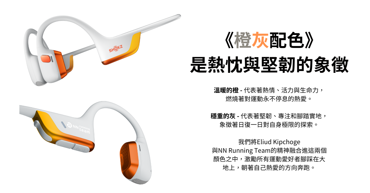 除了提取NN Running Team的標誌配色,OpenRun Pro 2 Eliud Kipchoge 限定聯乘版還將NN Running Team的logo刻印在了機身上。自成立以來,NN Running Team的運動員已贏得不少於 11 場馬拉松賽的大滿貫,創造了7項世界紀錄,在許多公路、田徑和越野賽中奪得世界冠軍,並在全球範圍內贏得了超過 175 場公路比賽。基普喬格先生與NN Running Team,已成為無數跑步愛好者心中的信仰和支柱。我們希望這一款帶有頂尖運動員“更快、更高、更強”的體育競技基因的產品,能激勵每一位熱愛跑步的用戶,讓他們每一次站在起點戴上這款耳機時,都能感受到沸騰的熱血正注入他們的四肢和心臟。