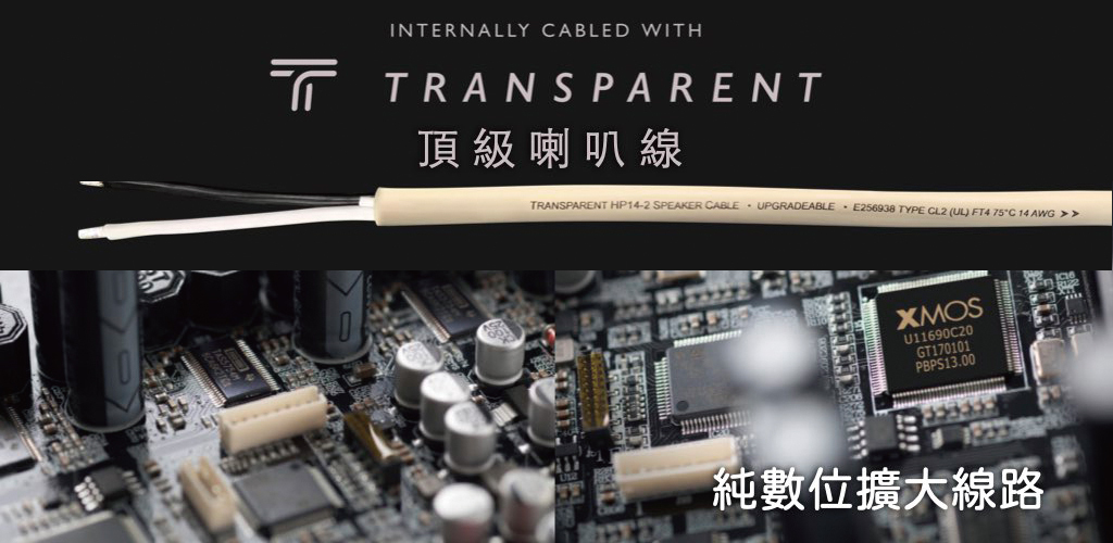 - TRANSPARENT 喇叭線傳遞準確信號;接駁多種輸入模式;通過Hi-Res認證