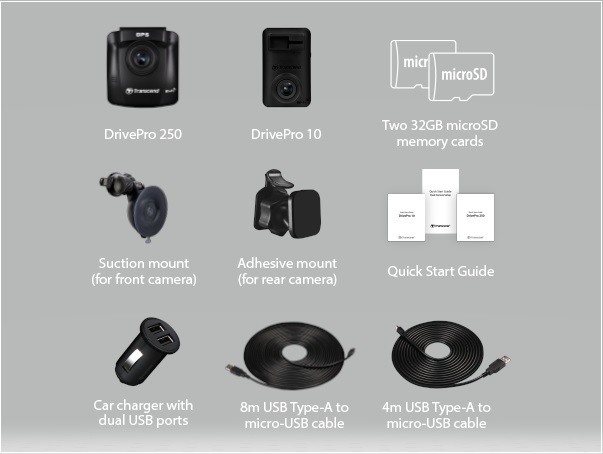 The DrivePro 620 is the ultimate pair of dashcams combining Transcend's DrivePro 250 as the front camera and DrivePro 10 as the rear camera. Featuring high-sensitivity STARVIS™ image sensors, it delivers crystal clear sharpness and night images even in low light.