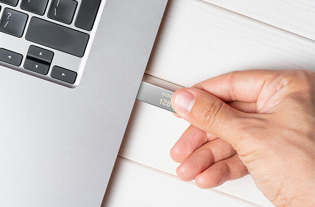 KIOXIA TransMemory U366 USB flash drives support USB 3.2 Gen 1 interface type-A with small, stylish metallic body.