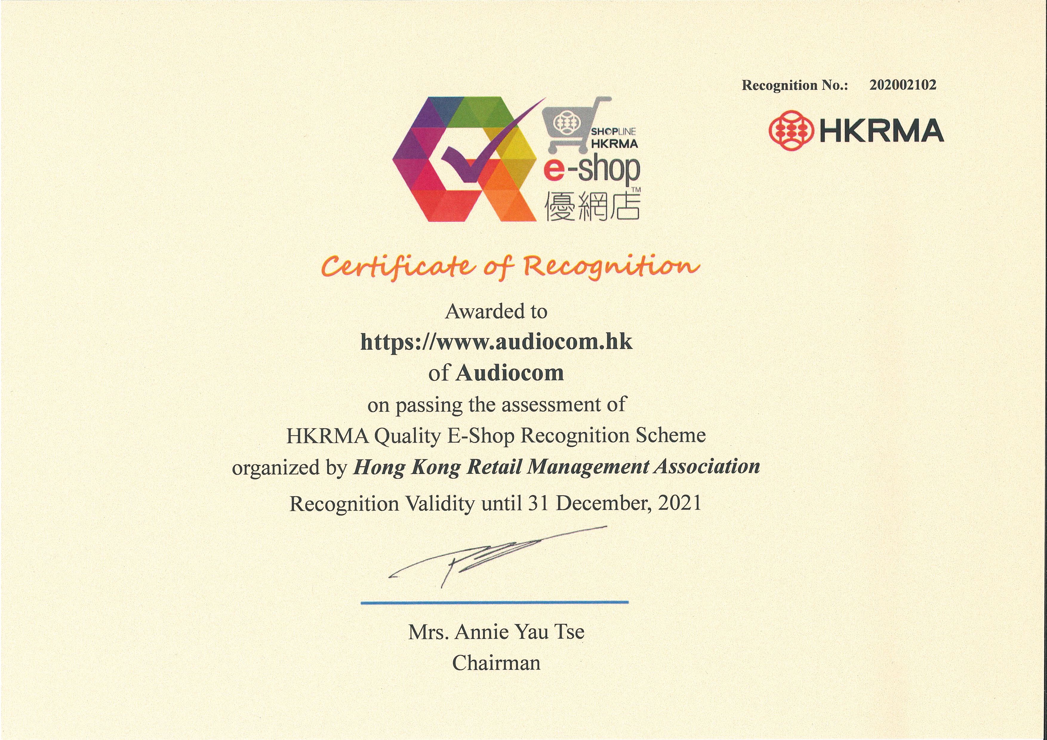 2020年12月得到由 HKRMA舉辦的 2020 TOP 10 e-shop 優網店選舉 [TOP 2]