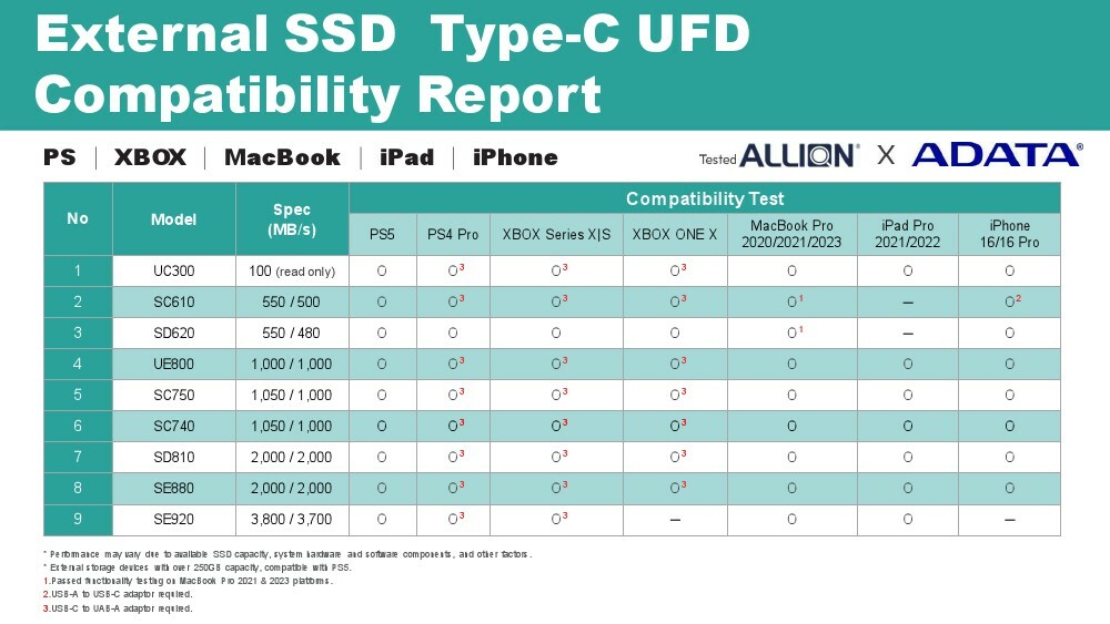 * 為了達到最佳效能表現,電腦設備須支援 USB 3.2 Gen 2 規格與 UASP 驅動程式。實際速度會因主機軟硬體配置而有所不同。