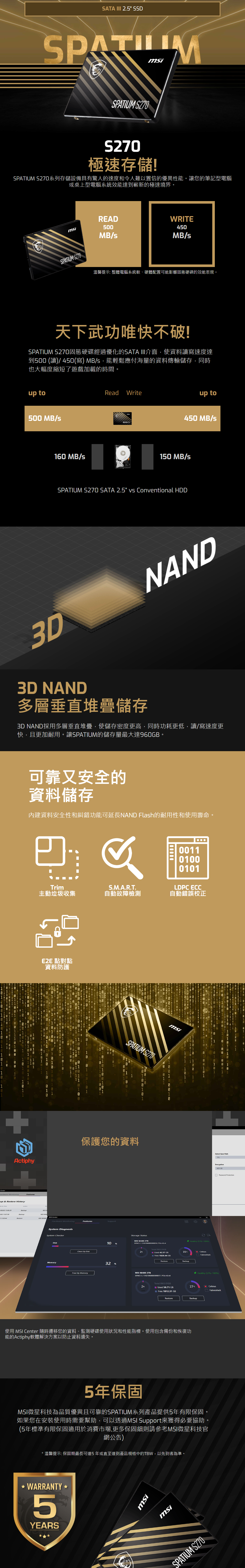 - 適用於桌上型電腦及筆記型電腦五年有限保固或到達產品TBW