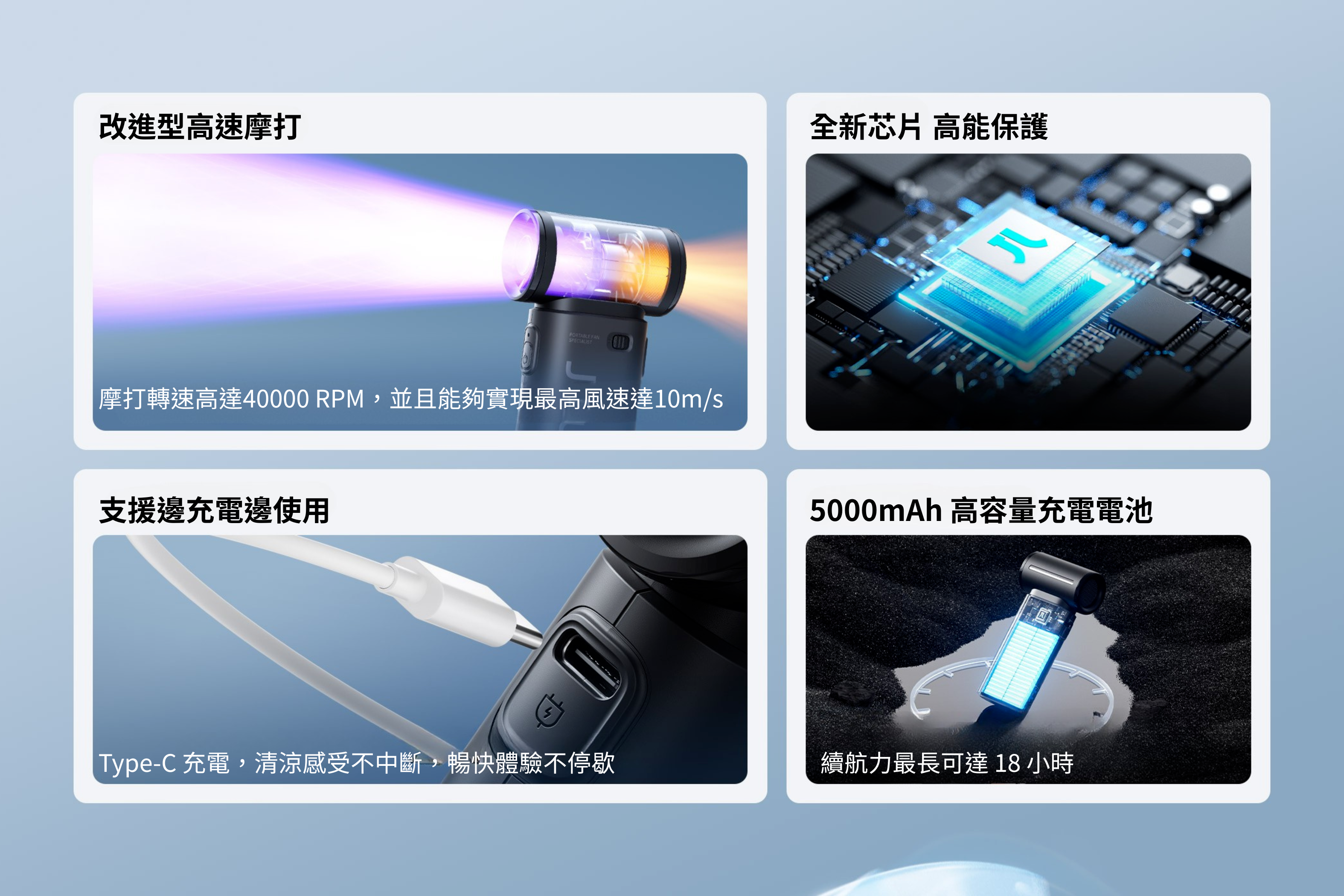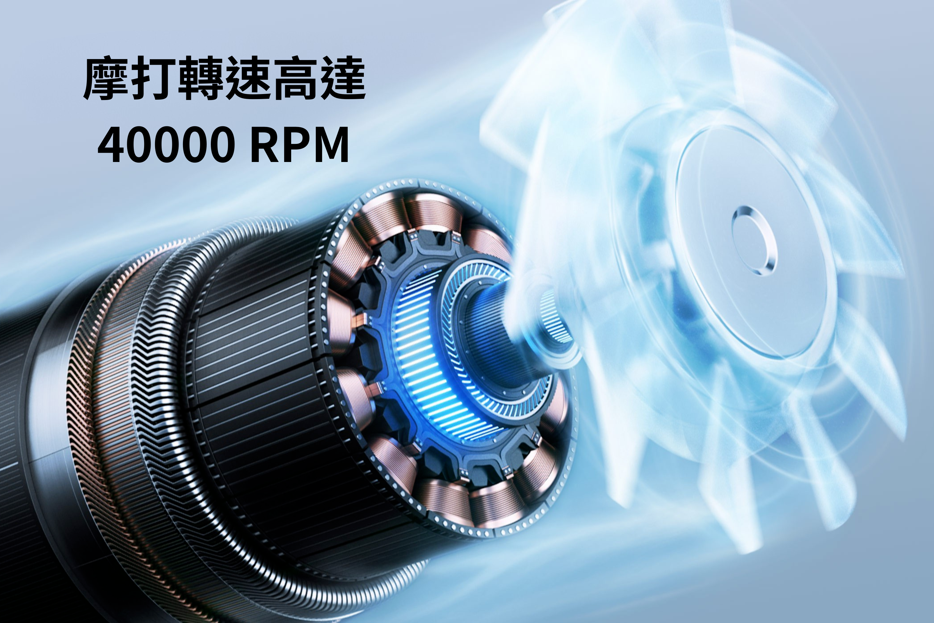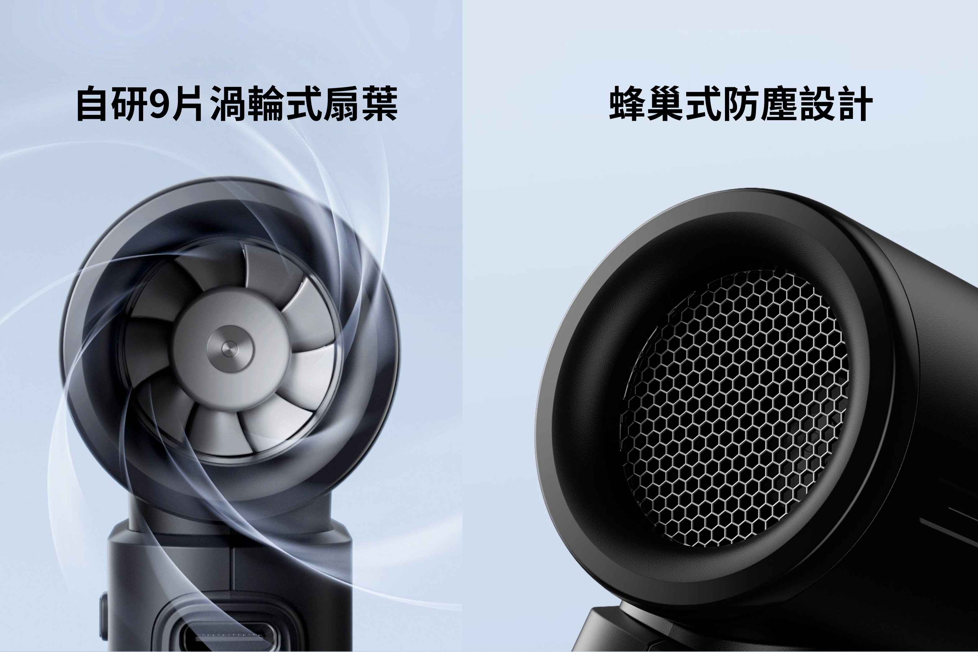 升級雙軸承摩打轉速衝破40,000 RPM,自研9片渦輪扇葉計瞬間輸出颱風級風力