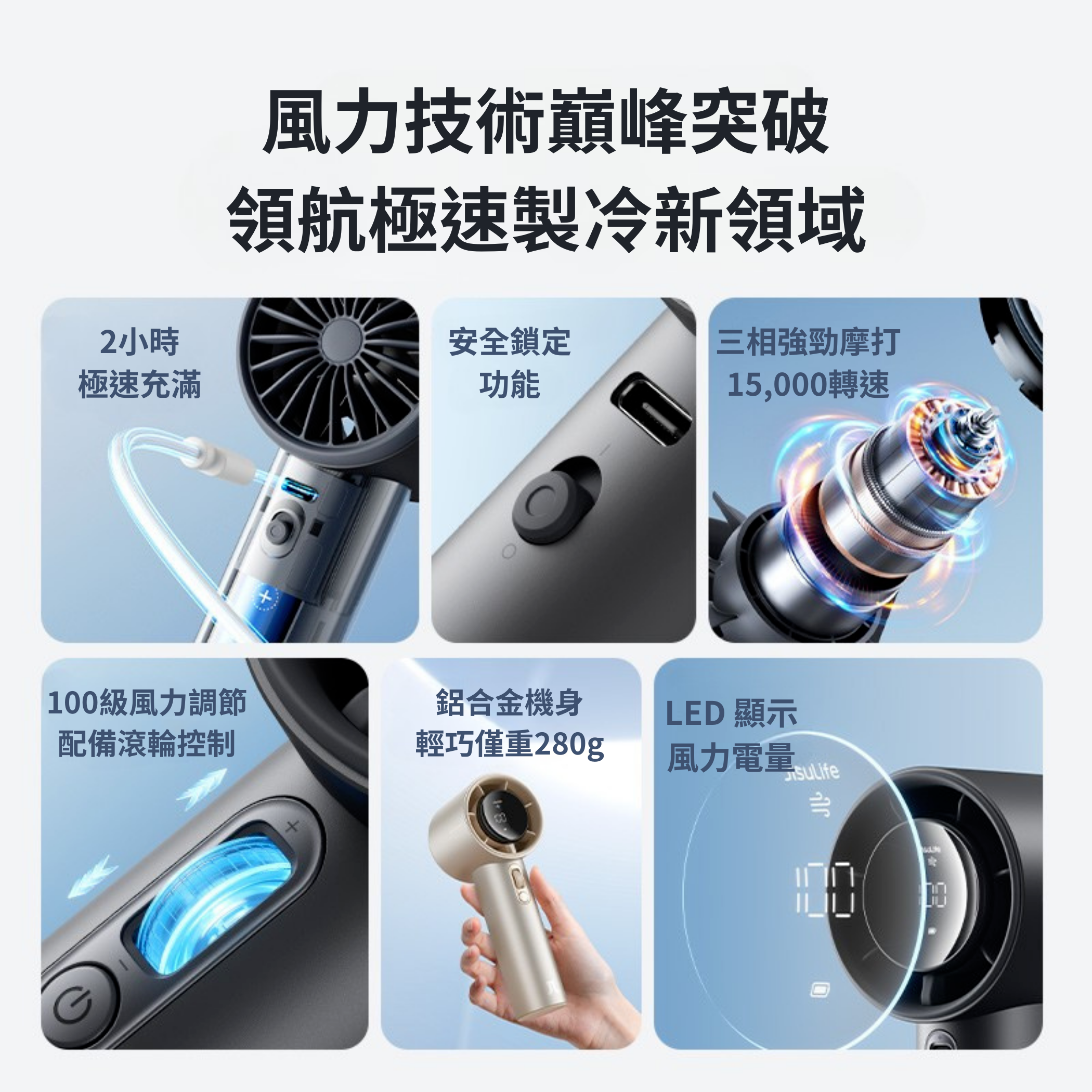 ❄️LED 顯示風力電量,背部設安全鎖定功能