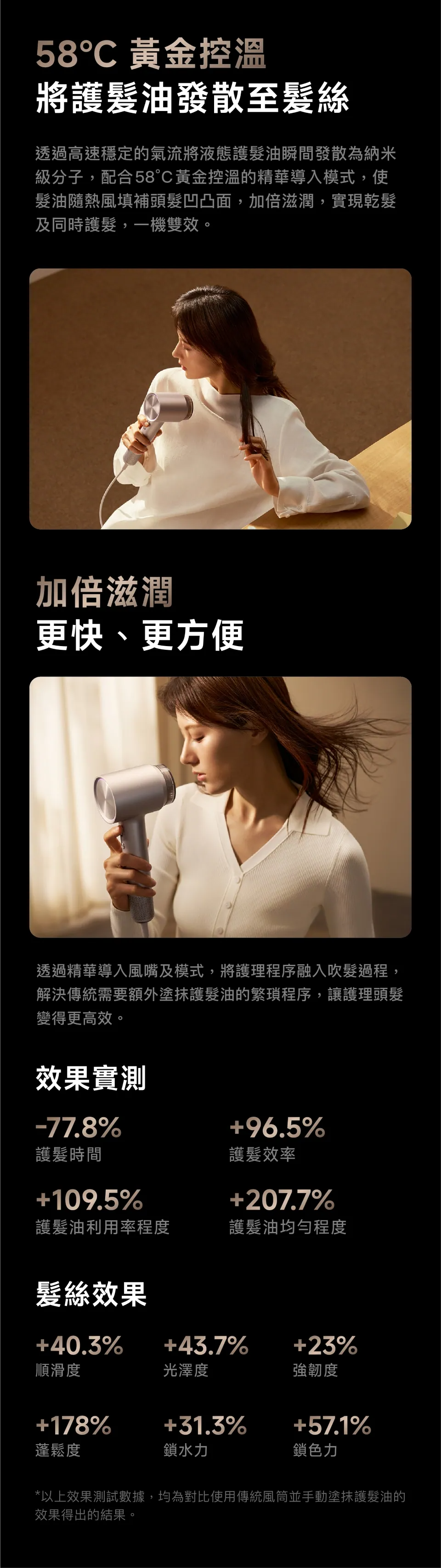 ✨58°C黃金恆溫精華導入模式,全方位發揮護髮油