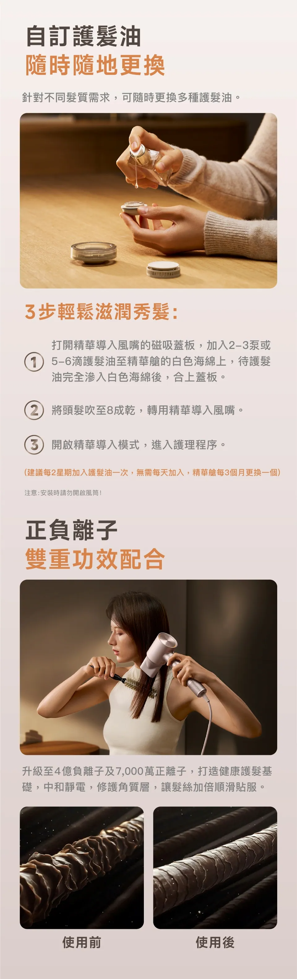 ✨全新精華導入風嘴,加入護髮油使用,快速護髮