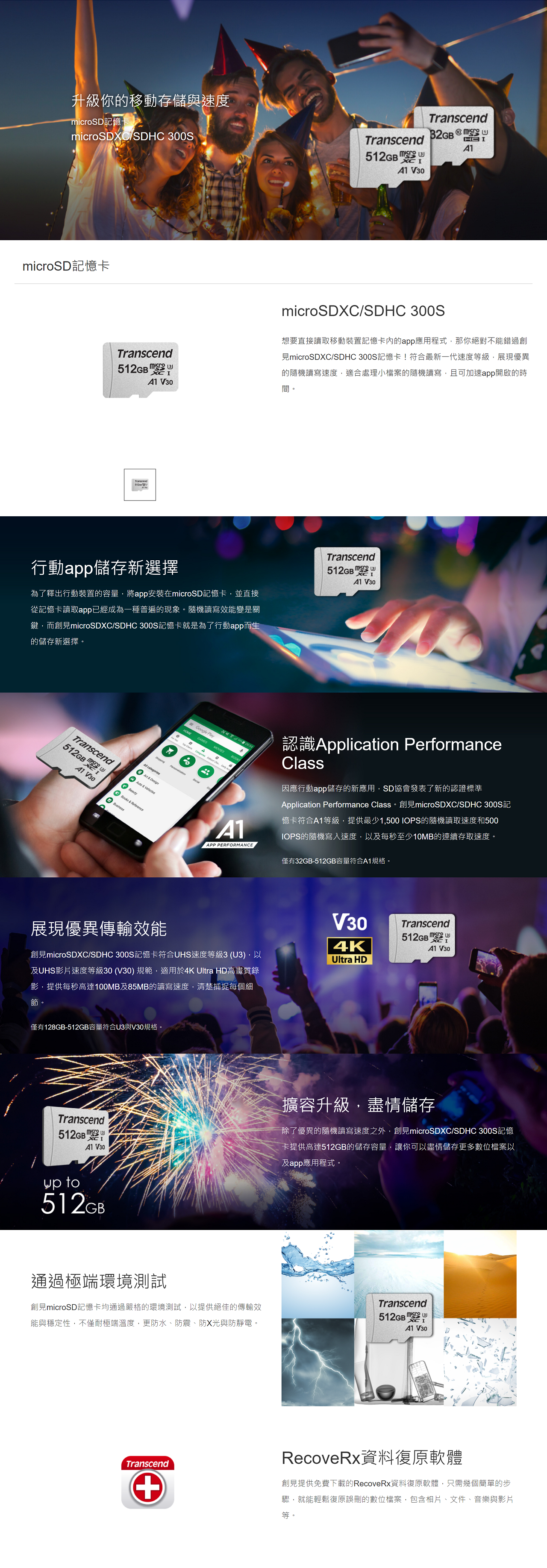 想要直接讀取移動裝置記憶卡內的app應用程式,那你絕對不能錯過創見microSDXC/SDHC 300S記憶卡!符合最新一代速度等級,展現優異的隨機讀寫速度,適合處理小檔案的隨機讀寫,且可加速app開啟的時間。