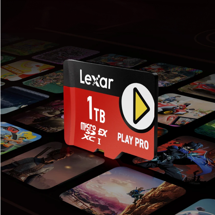 The Lexar PLAY PRO microSDXC™ Express Card gives gamers an epic performance power-up with up to 900MB/s read and 600MB/s write*1 and capacity up to 1TB offers space for many AAA games.