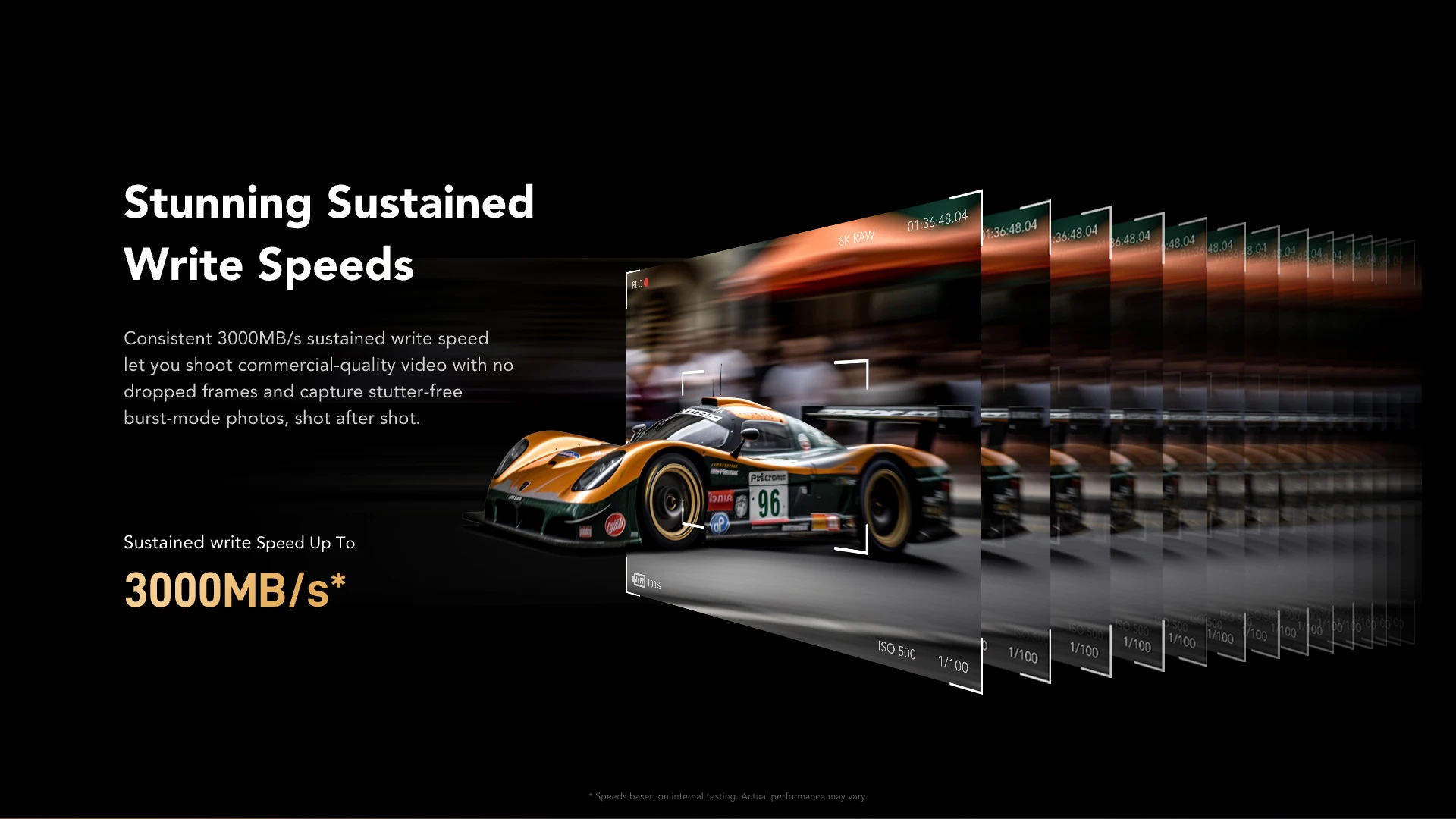 3600MB/s max read, 3300MB/s max write, 3000MB/s sustained write¹