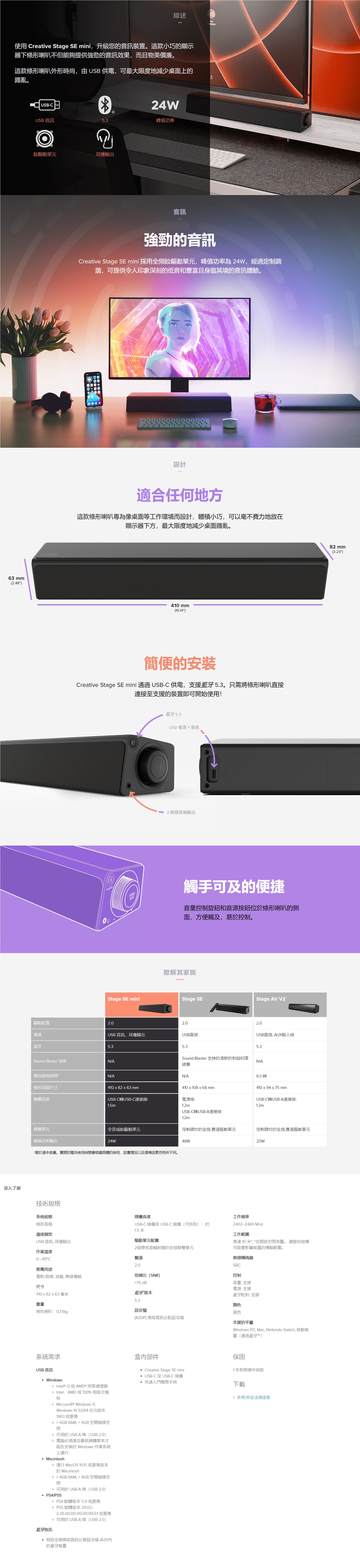 支援藍牙 5.3 的緊湊型顯示器下條形喇叭